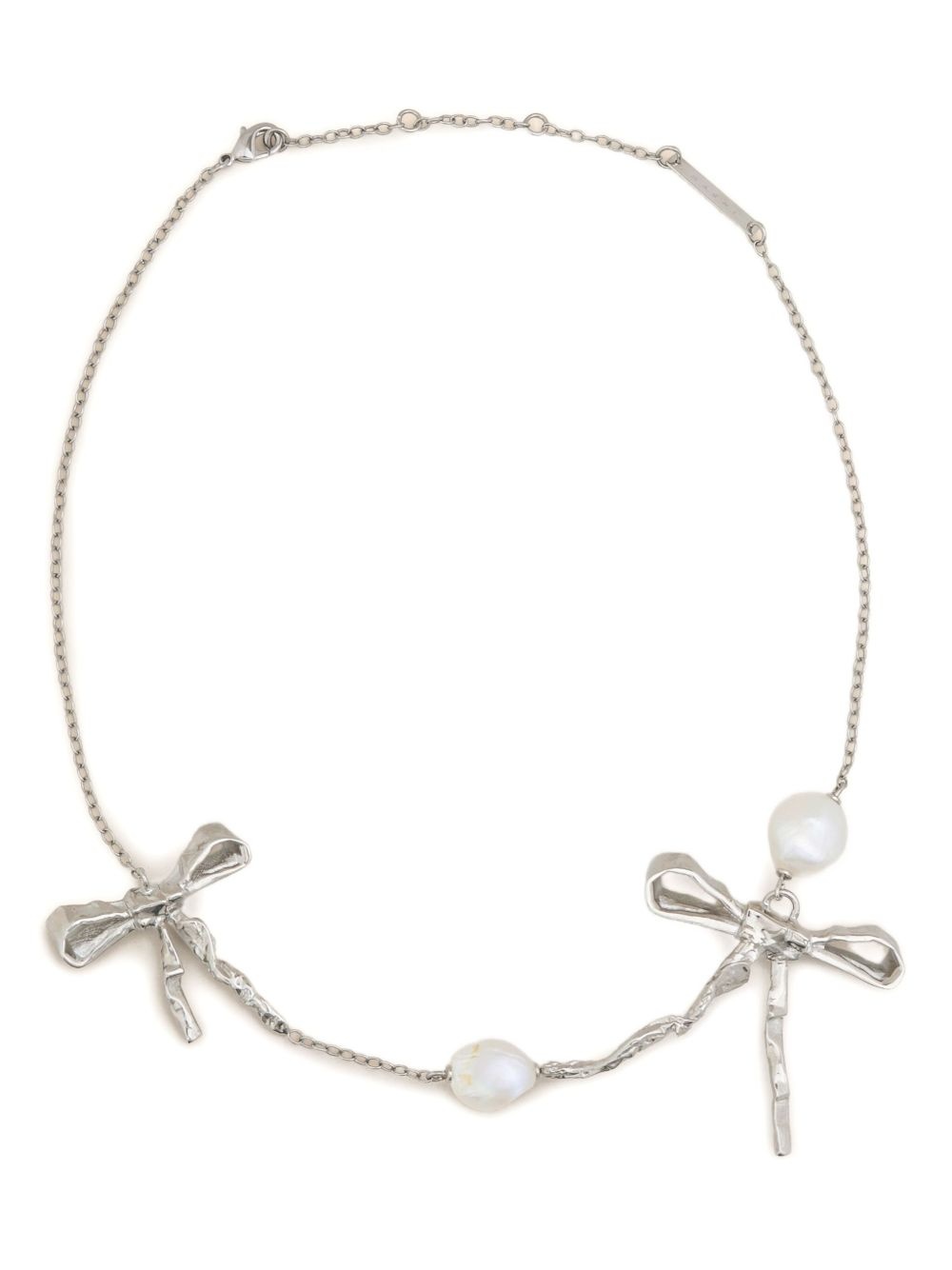 double-bow necklace Highlights - Silver - Two bow charms - Pearl detailing - Elongated link chain Made in Italy