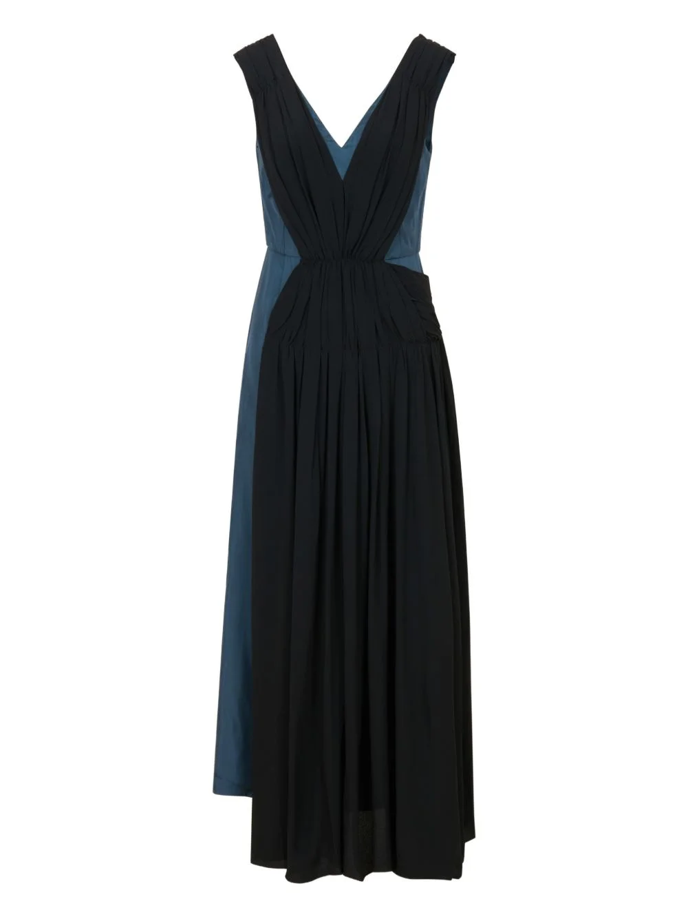 draping-detail split mini dress Highlights - Blue - Draping detail - V-neck - Back zip closure - Back slit Made in Italy Composition Rayon 100% Washing instructions Read Manufacturer Guidelines