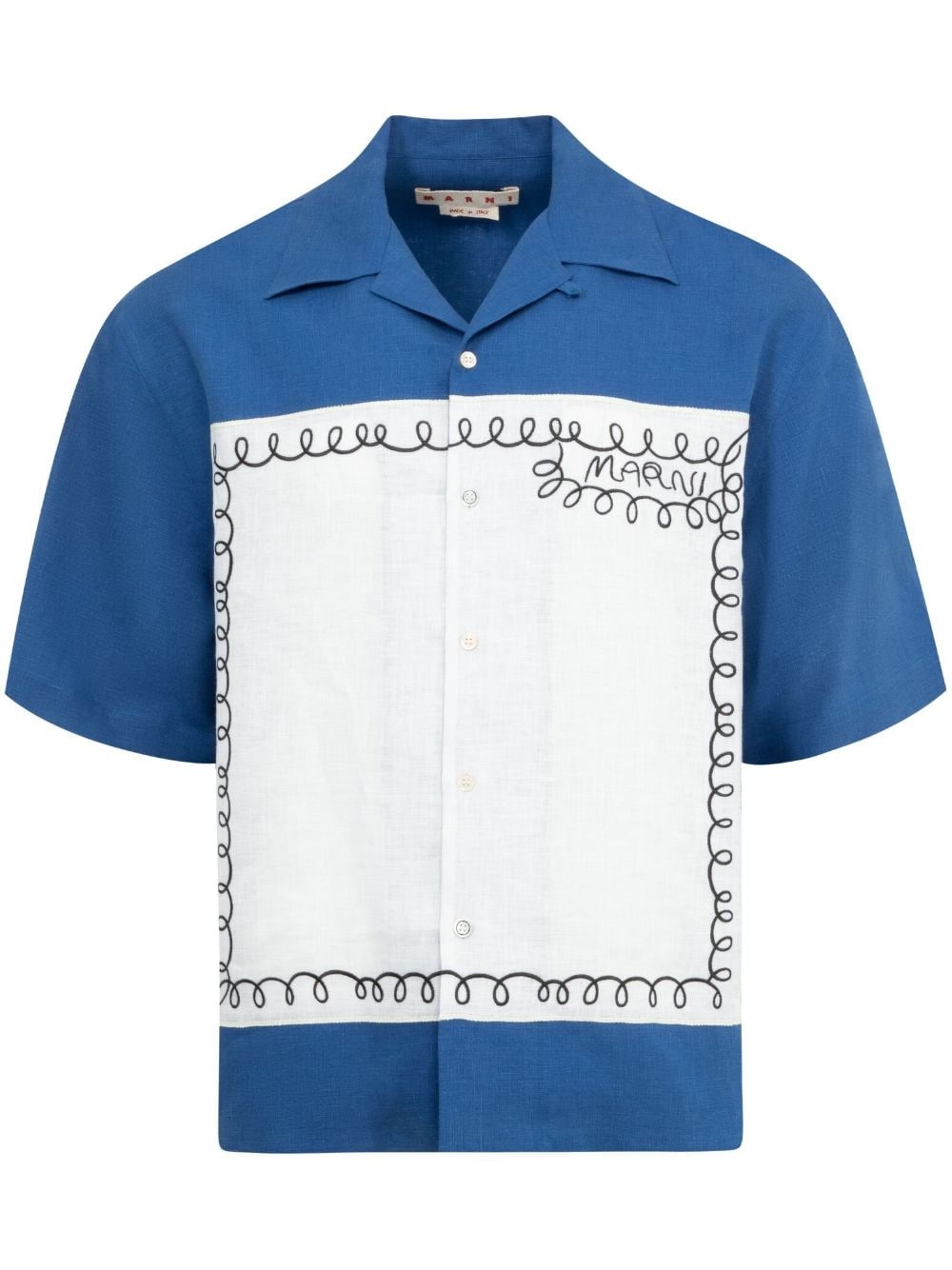 echoes-print shirt Highlights - Blue - Cotton - Front button fastening - Camp collar - Short sleeves - Echoes print - Straight hem Made in Italy Composition Cotton 100%