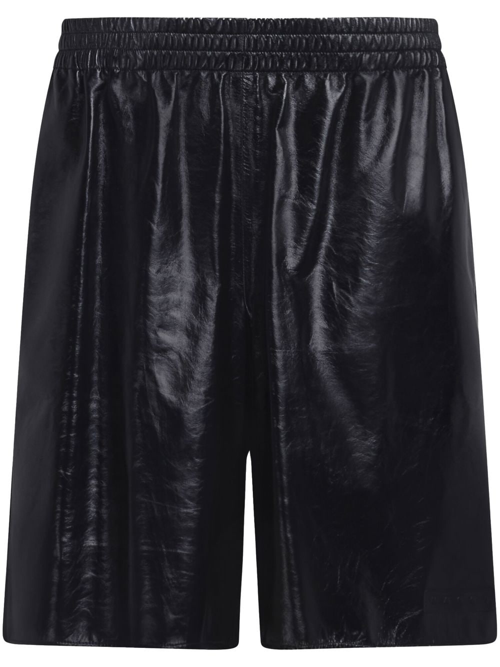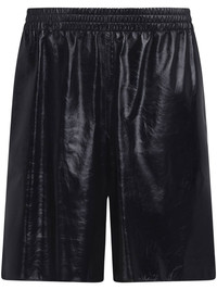 elasticated-waist leather shorts Highlights - Black - Lambskin - Elasticated waistband - Drop crotch - Rear patch pocket - Straight hem Made in Italy Composition Lamb Skin 100% SIZE & FIT FittingInformation Designed with a wide leg, offering a loose and roomy fit The elasticated waist allows for a comfortable fit Soft leather has a supple and smooth construction offering some flexibility