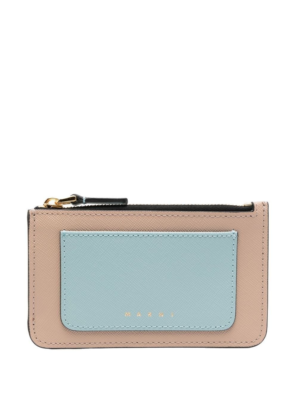 leather colour-block cardholder beige/pink/blue calf leather colour-block design embossed logo to the front top zip fastening rear card slots Made in Italy Composition Outer: Calf Leather 100% SIZE & FIT Measurement LENGTH 5.11 in(13 cm) WIDTH 3.14 in(8 cm) DEPTH 0.39 in(1 cm)