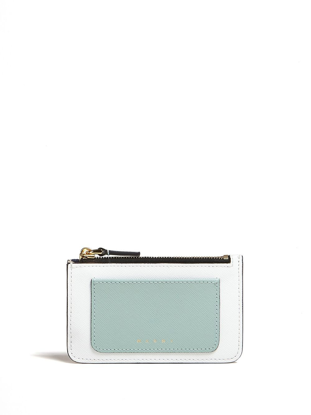 LIGHT GREEN WHITE AND BROWN SAFFIANO LEATHER CARD CASE