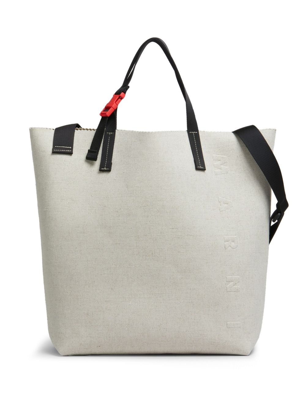 WHITE CANVAS TRIBECA SHOPPER WITH RAISED MARNI LOGO