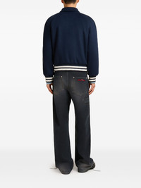 embroidered bomber jacket Highlights - Dark blue - Wool - Contrast piping - Button closure - Striped rib-knit cuffs - Embroidered logo Made in Italy Composition Virgin Wool 100% Washing instructions Read Manufacturer Guidelines