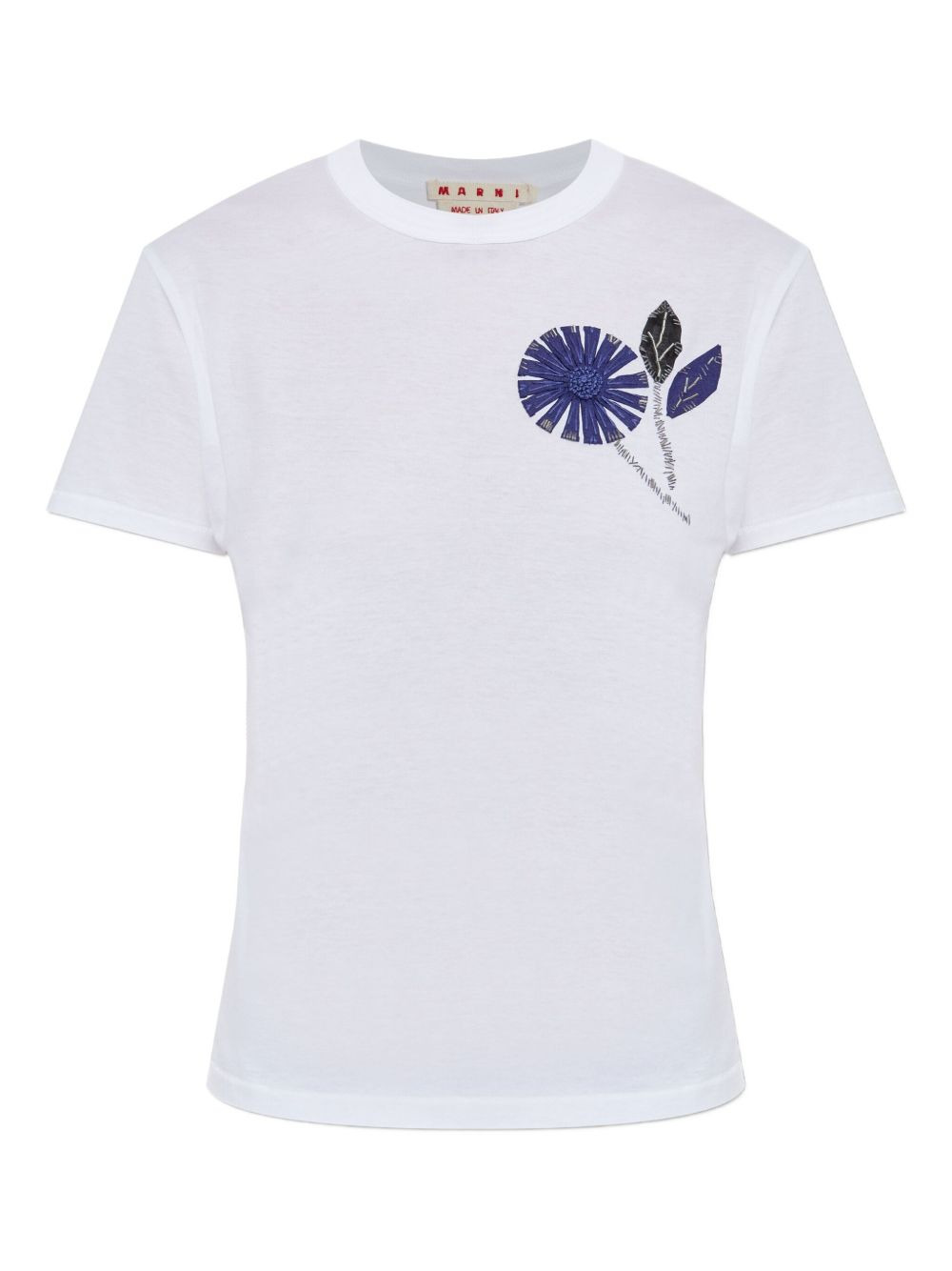 embroidered flower T-shirt Highlights - White - Embroidered flower detail - Short sleeves - Round neck - Cotton - Applique leaves Made in Italy Composition Cotton 100% Washing instructions Read Manufacturer Guidelines