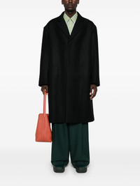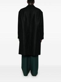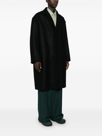 embroidered logo coat Highlights - Black - Virgin wool - Felted - Embroidered logo on the shoulder - Concealed front hook and button fastening - Notched lapels - Drop shoulder - Faux buttoned cuffs - Two side inset pockets - Central rear vent - Full lining - Internal pocket - Straight hem Made in Italy Composition Outer: Virgin Wool 100% Lining: Viscose 100% SIZE & FIT Model measurements Height 6 ft 2 in(1.87 m) Bust/Chest 36.41 in(92.5 cm) Hips 37 in(94 cm) Waist 29.52 in(75 cm) FittingInformation Designed for an oversized fit, offering additional room throughout The vented hem offers movement at the rear Made from a midweight non-stretch fabric