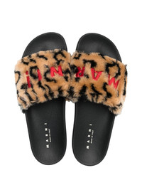 Logo-Embroidered Leopard-Print Faux Fur Slides