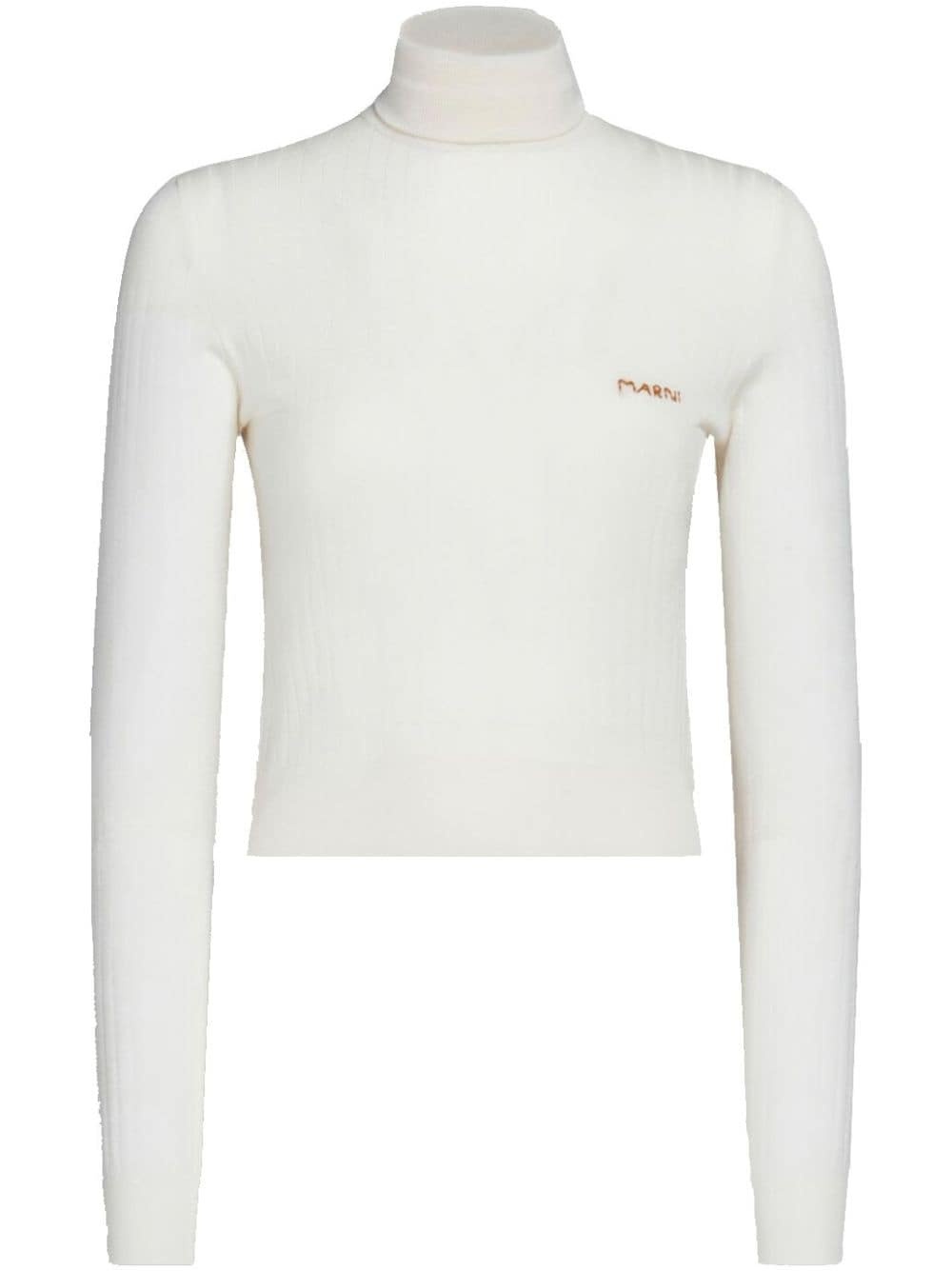 logo-embroidered ribbed jumper Highlights - Cloud white - Virgin wool-silk blend - Ribbed knit - Embroidered logo at the chest - High neck - Long sleeves - Straight hem Imported Composition Virgin Wool 70%, Silk 30% Washing instructions Do Not Wash/Do Not Dry Clean