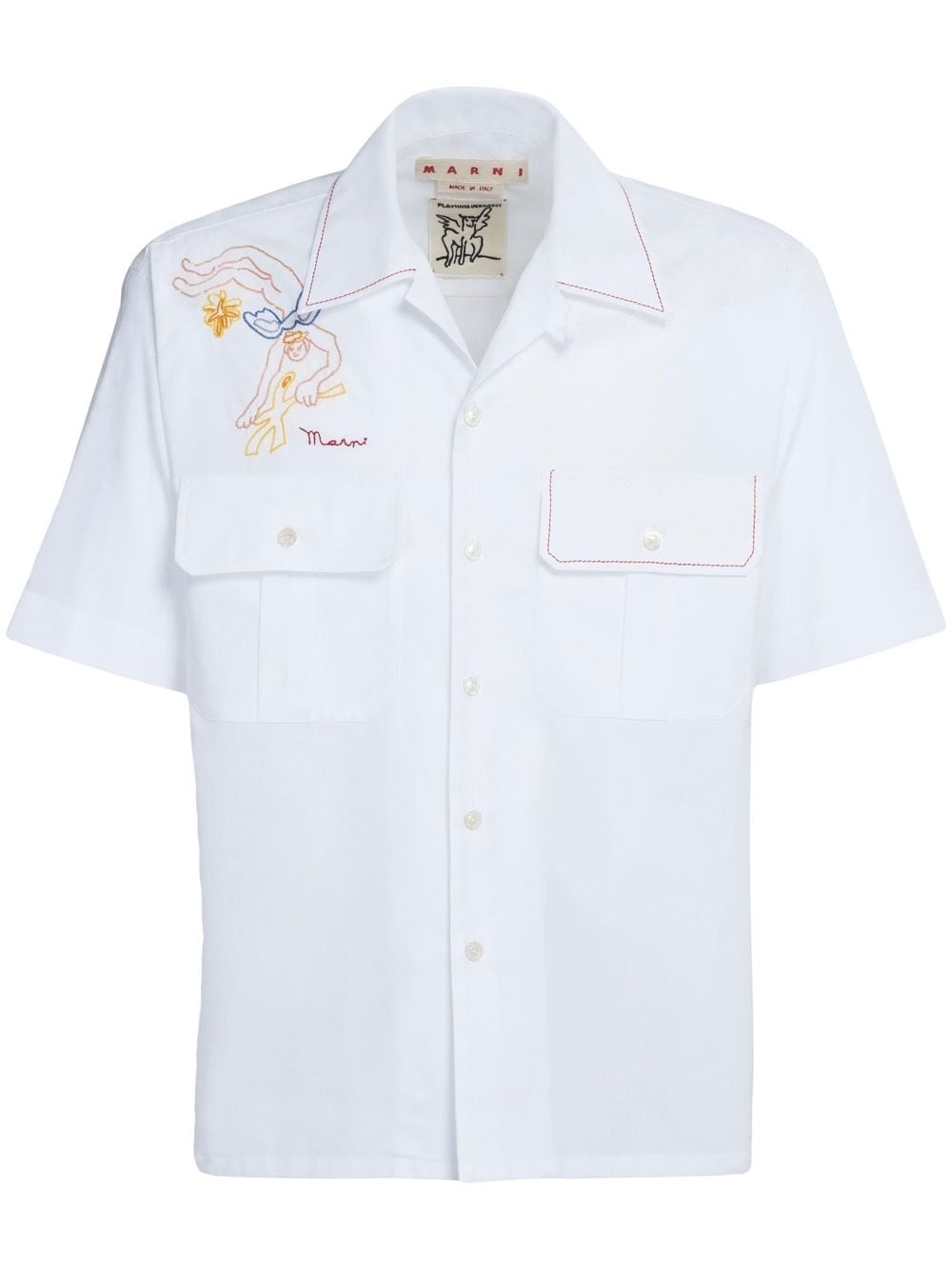 embroidered-logo short-sleeve shirt cloud white cotton embroidered logo at the chest embroidered motif notched collar front button fastening short sleeves two chest flap pockets straight hem Made in Italy Composition Cotton 100% SIZE & FIT Measurement CHEST 44.88 in(114 cm)