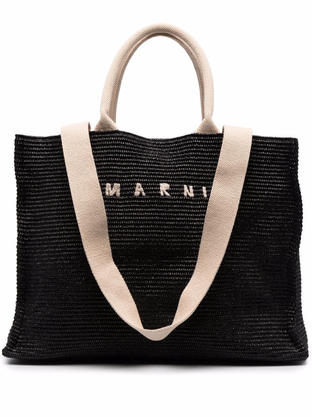 logo-embroidered raffia tote bag Highlights - Black/ beige - Cotton/ bovine leather - Embroidered logo to the front - Two rounded top handles - Internal zip pocket - Single shoulder strap Made in Italy Composition Outer: Brass 100%, Bovine Leather (top grain) 100%, Cotton 52%, Polyamide 48% SIZE & FIT Model measurements Height 5 ft 10 in(1.79 m) Bust/Chest 33.07 in(84 cm) Hips 35.82 in(91 cm) Waist 24.01 in(61 cm) Measurement DEPTH 7.87 in(20 cm) HANDLE 7.08 in(18 cm) HEIGHT 12.59 in(32 cm) STRAP 13.38 in(34 cm) WIDTH 17.71 in(45 cm)