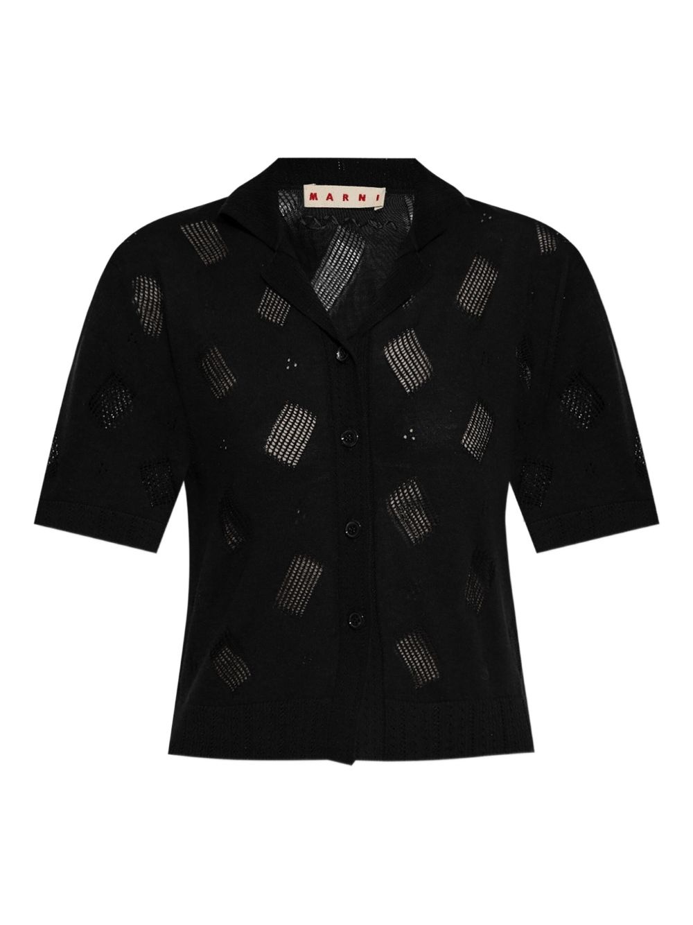BLACK WOOL-SILK KNIT OPENWORK SHIRT