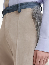 BEIGE VELVET TROUSERS WITH CONTRAST WAISTBAND