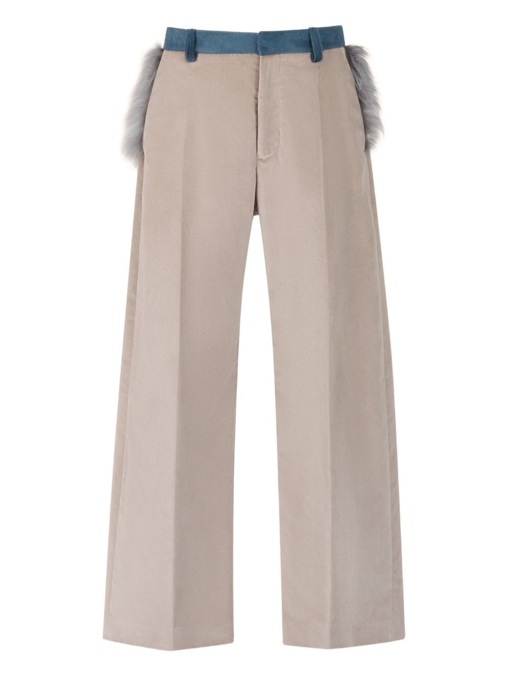 faux-fur-trimmed velvet trousers Highlights - Beige - Cotton velvet - Wide leg - Zip hook fastening - Slant and rear welt pockets - Faux-fur trim waistband Made in Italy Composition Outer: Cotton 100% Lining: Cotton 100% Washing instructions Read Manufacturer Guidelines