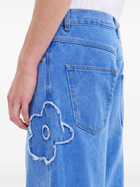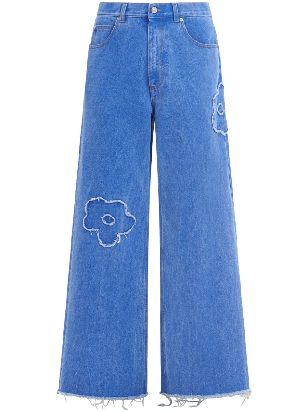 floral-applique jeans Highlights - Blue - Cotton - Washed denim - Floral applique - Concealed fly and button fastening - Belt loops - Contrast stitching - Classic five pockets - Logo patch to the rear - Raw-cut hem - Wide leg Made in Italy Composition Cotton 100%