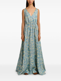 floral-pattern maxi dress Highlights - Light blue - Floral print - V-neck - Drawstring waist - Flounce hem - Embroidered logo Made in Italy Composition Ramie 100% Washing instructions Read Manufacturer Guidelines