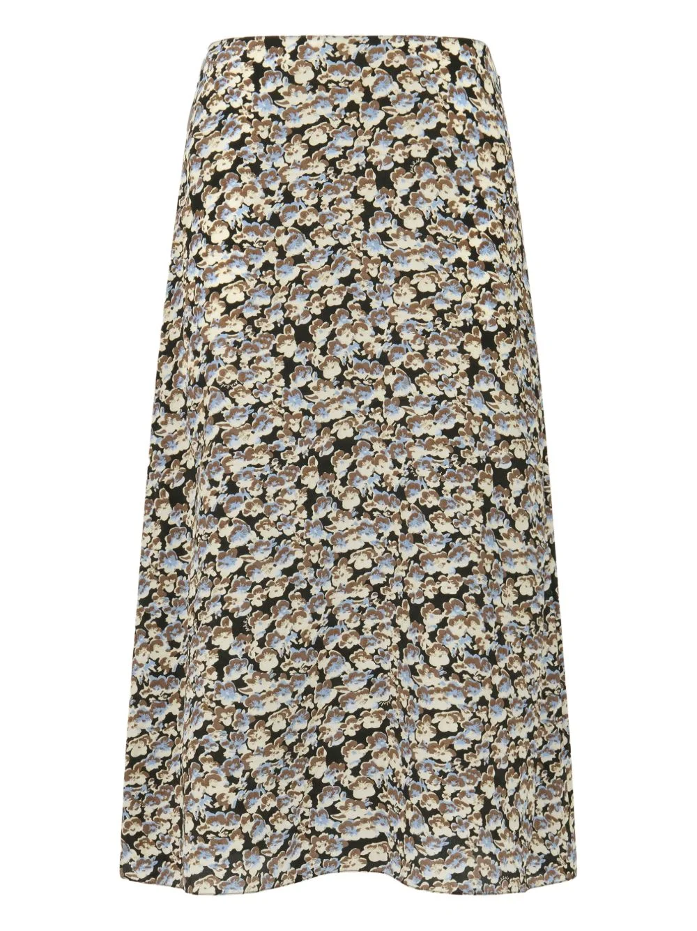 BLACK CRÊPE DE CHINE FLUID SKIRT WITH ANEMONES PRINT