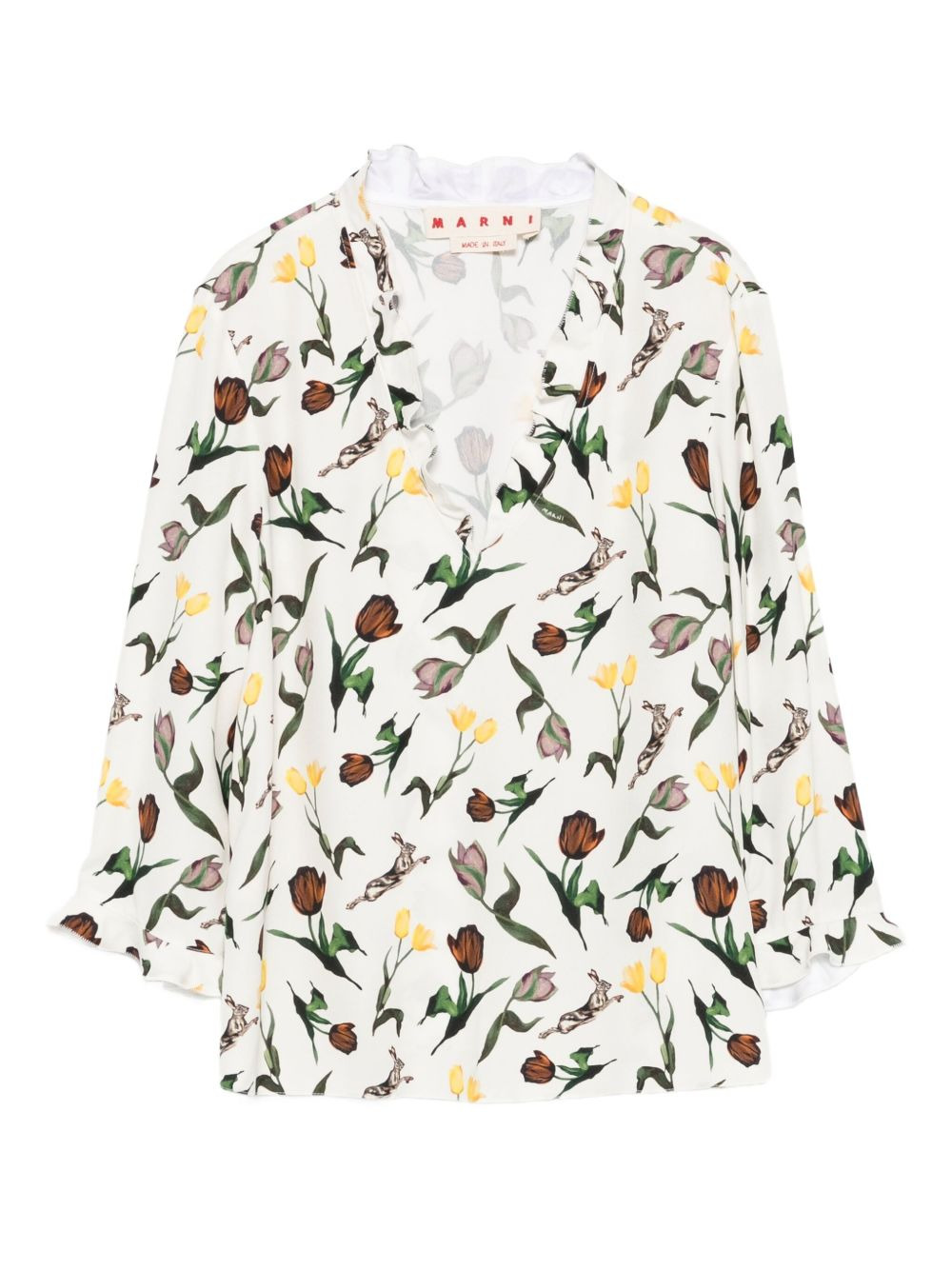 floral-print blouse Highlights - Off-white - Floral print - V-neck - Long sleeves Made in Italy Composition Lining: Cupro 60%, Silk 40% Outer: Viscose 100%
