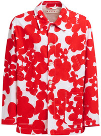 floral-print cotton jacket Highlights - Red/white - Cotton - All-over floral print - Front button fastening - Spread collar - Embroidered logo to the side - Two front jetted pockets - Two front patch pockets - Long sleeves - Straight hem Made in Italy Composition Cotton 100%