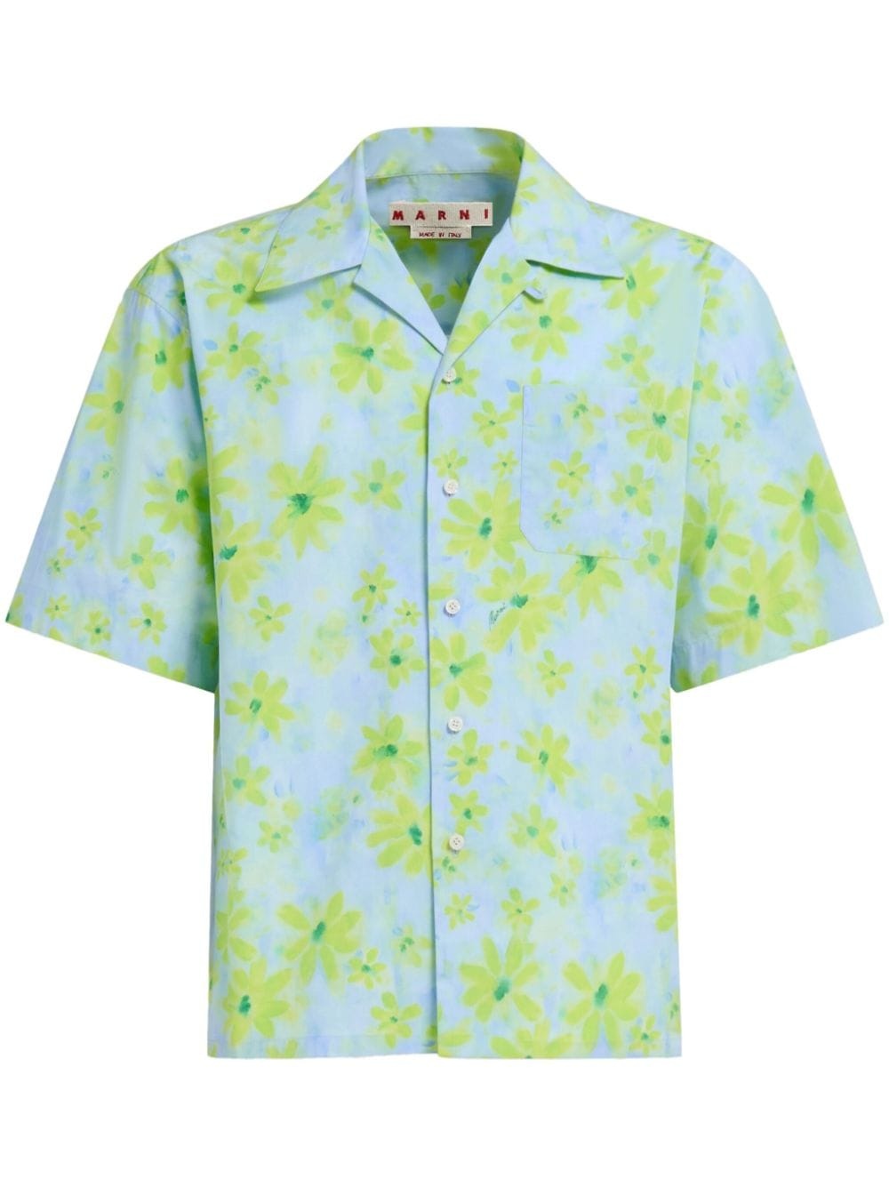 floral-print cotton shirt Highlights - Light blue/apple green - Cotton - All-over floral print - Notched collar - Front button fastening - Short sleeves - Chest patch pocket - Straight hem Made in Italy Composition Cotton 100%