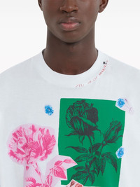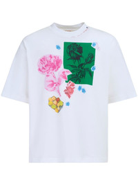 floral-print cotton T-shirt Crafted from soft cotton jersey in a white colourway, Marni's crew-neck T-shirt is defined by the vibrant graphic print that depicts a flower bouquet. Highlights - White/multicolour - Cotton - Jersey texture - Embroidered logo at the neck - Floral print to the front - Crew neck - Short sleeves - Straight hem Made in Italy Composition Cotton 100%