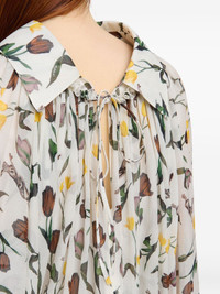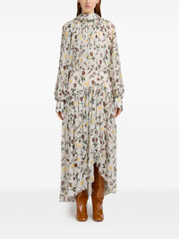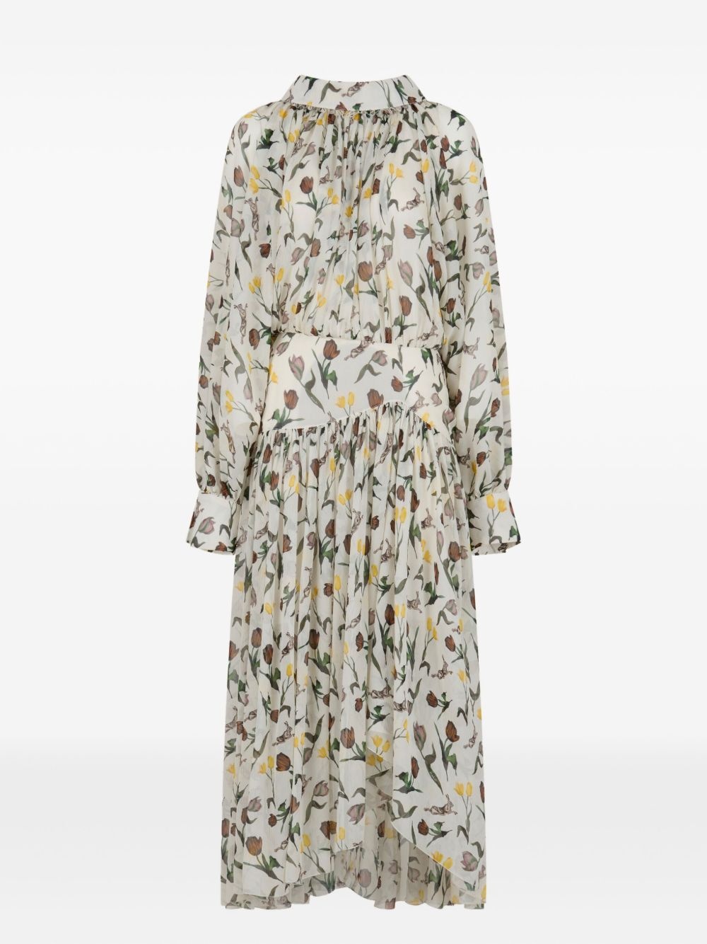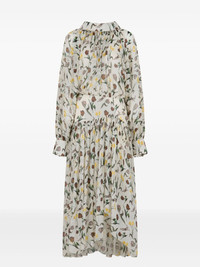 floral-print ruffled dress Highlights - White - Gathered detailing - High neck - Long sleeves - Flared skirt - Buttoned cuffs Made in Italy Composition Silk 100% SIZE & FIT Measurement HIPS 34.64 in(88 cm) LENGTH 52.36 in(133 cm) WAIST 28.34 in(72 cm) BUST 33.07 in(84 cm)