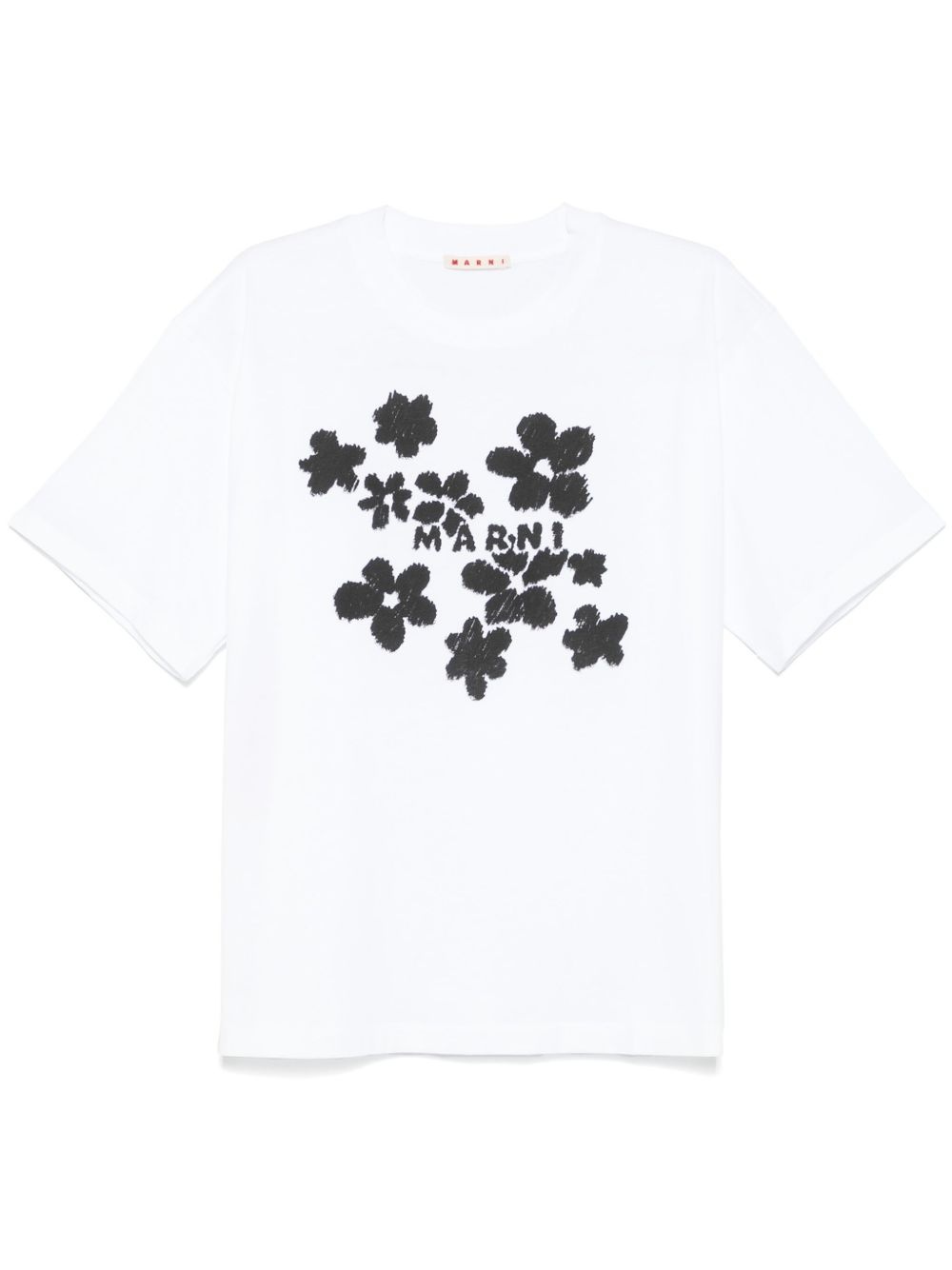 floral-print T-shirt Highlights - White - Crew neck - Short sleeves - Logo print to the front Imported Composition Cotton 100% SIZE & FIT Model measurements Height 5 ft 11 in(1.8 m) Bust/Chest 32.67 in(83 cm) Hips 36.22 in(92 cm) Waist 24.4 in(62 cm) FittingInformation Designed to be unstructured, offering a loose fit throughout Made from a midweight non-stretch fabric, this piece offers minimal elasticity when worn