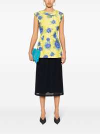 floral-print taffeta top Highlights - Lemon yellow/royal blue - Taffeta - All-over floral print - Watercolour effect to the print - Decorative stitching - Round neck - Sleeveless - Dart detailing - Side slits - Straight hem - Unlined - Concealed rear hook and zip fastening Made in Italy Composition Polyester 66%, Cotton 34% SIZE & FIT Model measurements Height 5 ft 10 in(1.77 m) Bust/Chest 31.88 in(81 cm) Hips 36.22 in(92 cm) Waist 24.01 in(61 cm) FittingInformation Designed for a slim fit that sits just away from the body offering a close yet comfortable fit Made from a lightweight non-stretch fabric This piece fits true to size – take your usual size Washing instructions Dry Clean Only