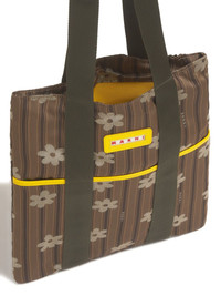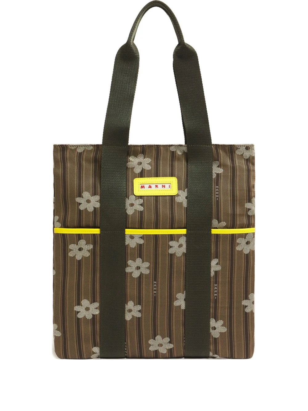 floral striped tote bag Highlights - Brown - Stripe and floral pattern - Tape handles - Leather accents - Embroidered logo Made in Italy Composition Outer: Cotton 100%, Calf Leather 100%, Polyamide 61%, Polyester 39% Lining: Cotton 95%, Acrylic 5% SIZE & FIT Measurement DEPTH 0.39 in(1 cm) HANDLE 9.05 in(23 cm) HEIGHT 14.96 in(38 cm) WIDTH 13.18 in(33.5 cm)