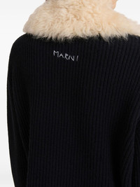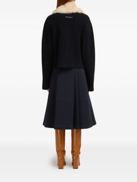 BLACK WOOL CARDIGAN WITH SHEARLING PATCHES