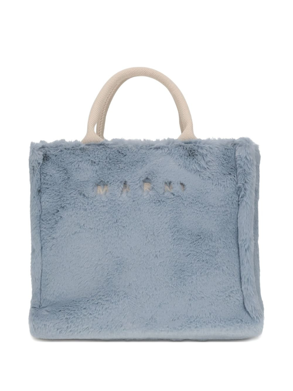 fur-trimmed tote bag Highlights - Light blue - Faux-fur construction - Top handles - Adjustable detachable shoulder strap - Logo detail Made in Italy Composition Polyester 100% SIZE & FIT Measurement DEPTH 6.1 in(15.5 cm) HEIGHT 13.97 in(35.5 cm) WIDTH 13.97 in(35.5 cm)