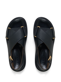 Fussbet leather sandals A masterclass in minimalism, Marni's Fussbett sandals are crafted from black leather with wide criss-cross front straps. Rectangular gold-tone hardware completes the design. Highlights - Black - Calf leather - Gold-tone hardware - Open toe - Crossover strap at the toe - Buckle-fastening ankle strap - Branded insole - Flat rubber sole Made in Italy Composition Leather 100%