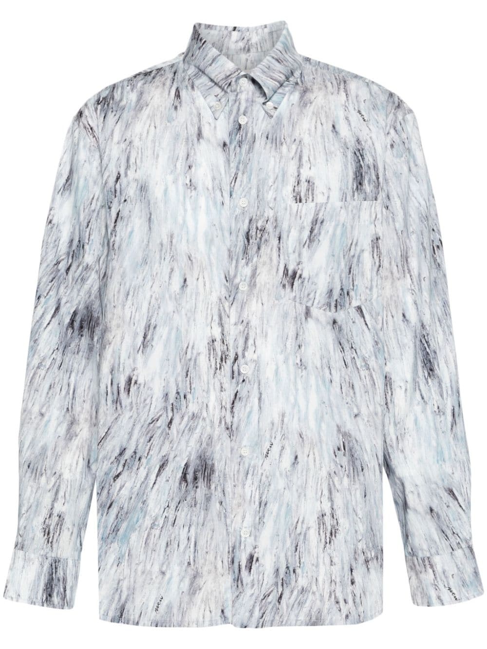 Fuzzy Crayon shirt Highlights - Ice blue - Cotton - Poplin texture - All-over fuzzy crayon print - Front button fastening - Button-down collar - Long sleeves with buttoned cuffs - Chest patch pocket - Rear curved hem Made in Italy Composition Cotton 100% SIZE & FIT Model measurements Height 6 ft 1 in(1.85 m) Bust/Chest 35.82 in(91 cm) Hips 37.79 in(96 cm) Waist 29.13 in(74 cm) FittingInformation Designed to be unstructured, offering a loose fit throughout Made from a midweight non-stretch fabric