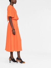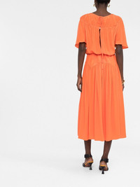 gathered-detailing silk midi dress Italian label Marni showcases its signature bold style in the vibrant orange colourway of this midi dress. The design is cut from lightweight silk to accentuate the dress's floaty design. Made in Italy Composition Silk 100% SIZE & FIT Model measurements Height 5 ft 11 in(1.8 m) Bust/Chest 32.67 in(83 cm) Hips 36.22 in(92 cm) Waist 24.4 in(62 cm) FittingInformation This piece fits true to size. We recommend you get your regular size Cut for a loose fit Made with a mid-weight non-stretch fabric Washing instructions Dry Clean Only