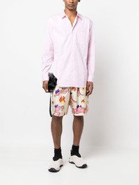 graphic-print bermuda shorts ivory white/multicolour silk/cotton blend all-over graphic print elasticated waistband belt loops front button and zip fastening pleat detailing straight leg Made in Italy Composition Outer: Silk 100% Lining: Cotton 69%, Polyamide 31% SIZE & FIT Model measurements Height 6 ft 2 in(1.87 m) Bust/Chest 37 in(94 cm) Hips 33.85 in(86 cm) Waist 27.95 in(71 cm) FittingInformation This piece fits true to size. We recommend you get your regular size Designed for a slim fit at the waist and loose over the leg Made with a mid-weight stretch fabric Washing instructions Dry Clean Only