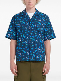 BLUE POPLIN BOWLING SHIRT WITH MARNI DRIPPING PRINT