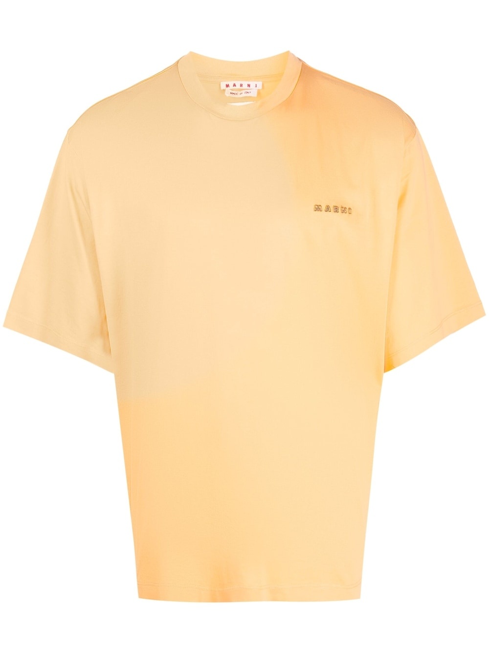 graphic-print cotton T-shirt Highlights - Light orange - Cotton - Embroidered logo at the chest - Graphic print to the rear - Crew neck - Short sleeves - Straight hem Made in Italy Composition Cotton 100% SIZE & FIT Model measurements Height 6 ft 2 in(1.87 m) Bust/Chest 37 in(94 cm) Hips 33.85 in(86 cm) Waist 27.95 in(71 cm) FittingInformation Designed for a boxy fit, intended for a loose fit throughout Made from a midweight non-stretch fabric, this piece offers minimal elasticity when worn This piece fits true to size – take your usual size Washing instructions Hand Wash