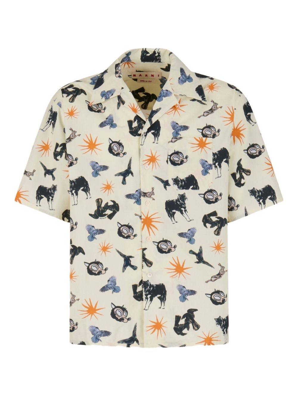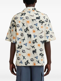 OFF-WHITE POPLIN BOWLING SHIRT WITH WOLVES, RAVENS AND DOVES PRINT