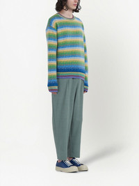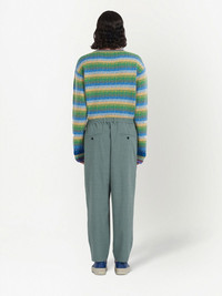 grid-pattern mid-rise pants green virgin wool grid pattern pleat detailing mid-rise elasticated waistband belt loops front button and zip fastening two rear welt pockets tapered leg Imported Composition Body: Virgin Wool 100%, Elastane 100%
