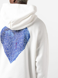heart-print cotton hoodie Marni's whimsical aesthetic enlivens this classic cotton hoodie, embellished with a contrasting blue heart and text print at the back. The brand's signature logo adorns the chest for a recognisable finishing touch. Highlights - White/multicolour - Cotton - Heart print - Text print - Classic hood - Long sleeves - Straight hem - Ribbed cuffs and hem Made in Italy Composition Cotton 100% SIZE & FIT Model measurements Height 6 ft 0 in(1.84 m) Bust/Chest 34.64 in(88 cm) Hips 35.03 in(89 cm) Waist 27.95 in(71 cm) Measurement CHEST 56.69 in(144 cm) SLEEVE LENGTH 26.37 in(67 cm) FittingInformation Designed for an oversized fit, offering additional room throughout Made from a midweight non-stretch fabric, this piece offers minimal elasticity when worn This piece fits true to size – take your usual size