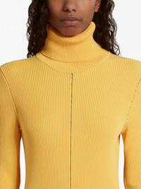roll-neck ribbed midi dress Highlights - Dark yellow - Ribbed knit - High neck - Long sleeves - Rear slit - Mid-calf length Made in Italy Composition Viscose 94%, Polyester 6% Washing instructions Do Not Wash/Do Not Dry Clean