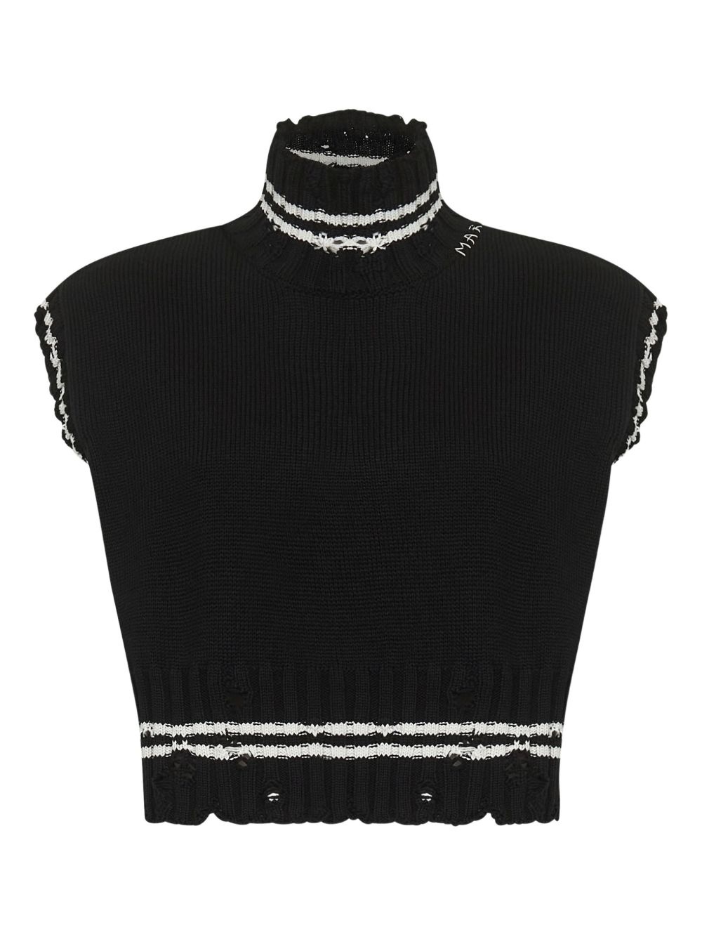 high-neck sleeveless T-shirt Highlights - Black - High neck - Striped pattern - Ribbed armholes - Contrast edges Made in Italy Composition Cotton 100% Washing instructions Read Manufacturer Guidelines