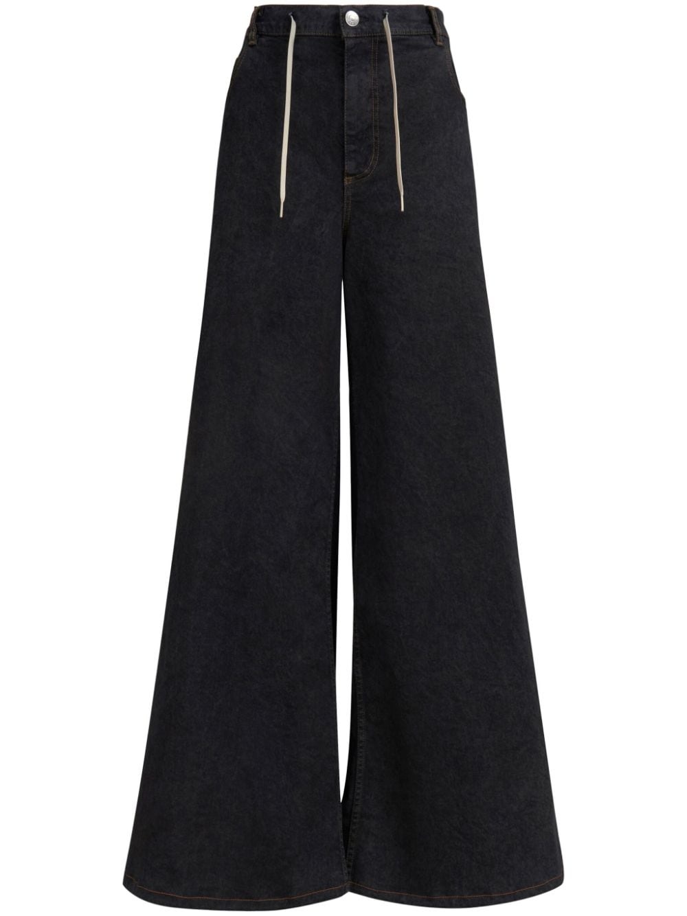high-rise wide-leg jeans Highlights - Black - Stretch-cotton - Denim - Dark wash - Logo patch to the rear - Front tie fastening - Front button fastening - Classic five pockets - Wide leg - Long length Made in Italy Composition Cotton 97%, Elastane 3%