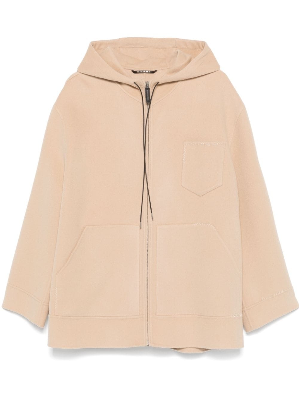 hooded jacket Highlights - Camel brown - Virgin wool-cashmere blend - Fleece texture - Front zip fastening - Contrast stitching - Drawstring hood - Long sleeves - Chest patch pocket - Embroidered logo at the chest - Two front pouch pockets - Curved hem Made In Italy Composition Virgin Wool 90%, Cashmere 10% SIZE & FIT Model measurements Height 5 ft 10 in(1.78 m) Bust/Chest 33.46 in(85 cm) Hips 36.22 in(92 cm) Waist 23.22 in(59 cm) FittingInformation Designed for an oversized fit, offering additional room throughout Made from a midweight non-stretch fabric