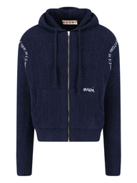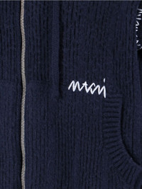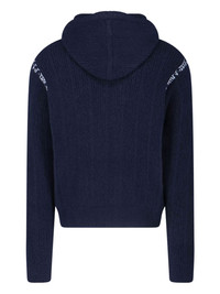 hooded zip-up cardigan Highlights - Navy blue - Ribbed knit - Zip fastening - Hooded neckline - Embroidered logo - Shoulder-seam detailing Made in Italy Composition Wool 100% Washing instructions Read Manufacturer Guidelines