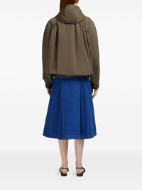hooded zip-up jacket Highlights - Olive green - Front zip fastening - Side welt pockets - Elasticated hem - Gathered detailing on shoulders Made in Italy Composition Polyester 67%, Cotton 33% Washing instructions Read Manufacturer Guidelines