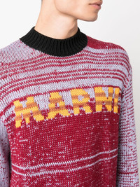 intarsia-knit-logo virgin-wool sweater Highlights - Dark red/light blue - Virgin wool - Knitted construction - Intarsia-knit logo - Drop shoulder - Crew neck - Long sleeves - Ribbed cuffs and hem Made in Italy Composition Virgin Wool 100% SIZE & FIT Model measurements Height 6 ft 1 in(1.85 m) Bust/Chest 35.82 in(91 cm) Hips 37.79 in(96 cm) Waist 29.13 in(74 cm) FittingInformation Designed for a relaxed fit, this piece allows for comfort and movement when worn Made with a midweight knit, this piece offers some stretch This piece fits true to size – take your usual size Washing instructions Dry Clean Only