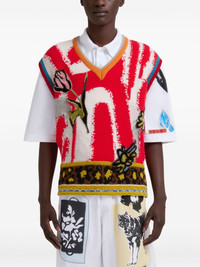 intarsia-knit sleeveless sweater Highlights - Red - Floral motifs - V-neck - Sleeveless design - Embellished waistband - Contrasting trim Made in Italy Composition Virgin Wool 100% Washing instructions Read Manufacturer Guidelines