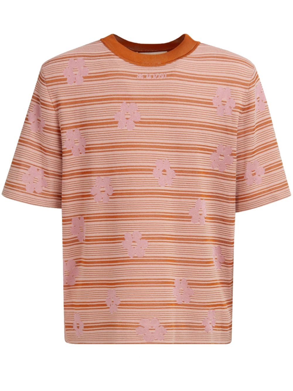 intarsia-logo knitted cotton T-shirt Highlights - Clay orange - Cotton - Fine knit - Horizontal stripe pattern - Intarsia-knit logo - Crew neck - Short sleeves - Straight hem Imported Composition Cotton 100%