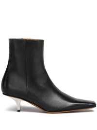heeled leather ankle boots Highlights - Black - Calf leather/goatskin - Pointed toe - Side zip fastening - Kitten heel Made in Italy Composition Outer: Ovine Leather (top grain) 100% Sole: Calf Leather 100% Lining: Goat Skin 100%