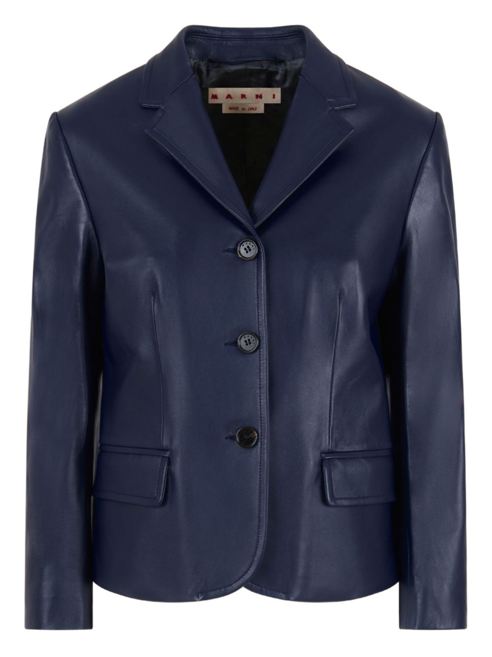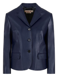 leather blazer Highlights - Navy blue - Front button fastening - Two front flap pockets - Central rear vent - Notched lapels Made in Italy Composition Ovine Leather (top grain) 100%
